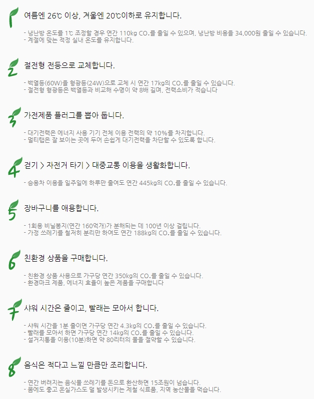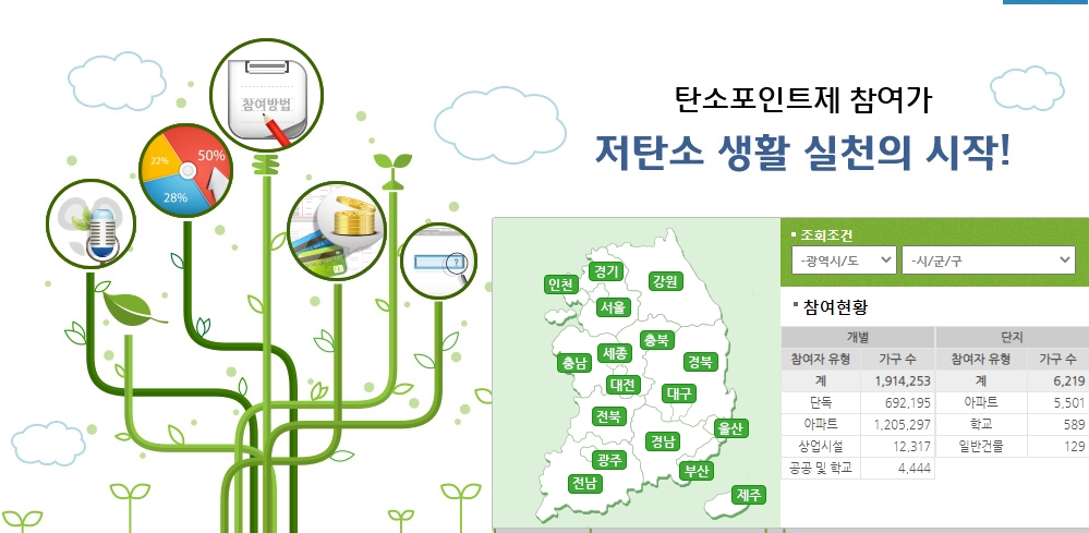 또한 탄소포인트제 가입방법 참여대상 중 개인은 가정의 세대주, 세대구성원 또는 학교, 상업 시설 등의 실제사용자 그리고 150세대 이상의 아파트단지, 학교, 일반건물의 공용부분을 관리하는 아파트 관리사무소,건물관리자 등이 해당됩니다. 가입방법 으로는 탄소포인트제 홈페이지 접속, 참여신청서 작성해 직접 방문 또는 우편이나 팩스로 신청할 수도 있습니다.