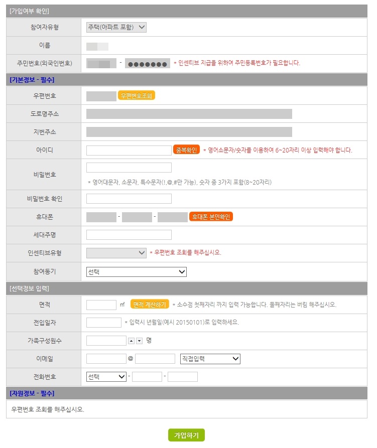 탄소포인트제 가입방법 2. 실명인증을 마치고 나면 이제 위처럼 이름과 주민번호가 자동적으로 기입되어져 있는 것을 확인한 후 아래의 주소와 아이디, 비밀번호, 휴대폰 번호 등을 기록합니다. 선택정보는 입력해도 되고 안해도 됩니다. 여기서 탄소포인트제 인센티브 유형을 선택합니다. 저는 현금을 선택했기 때문에 은행정보를 입력했습니다. 다 입력 후 가입하기 클릭하면 위처럼 사용이 가능합니다. 탄소포인트제 회원가입 할지를 묻는 팝업창이 뜹니다. 확인 눌러주세요.